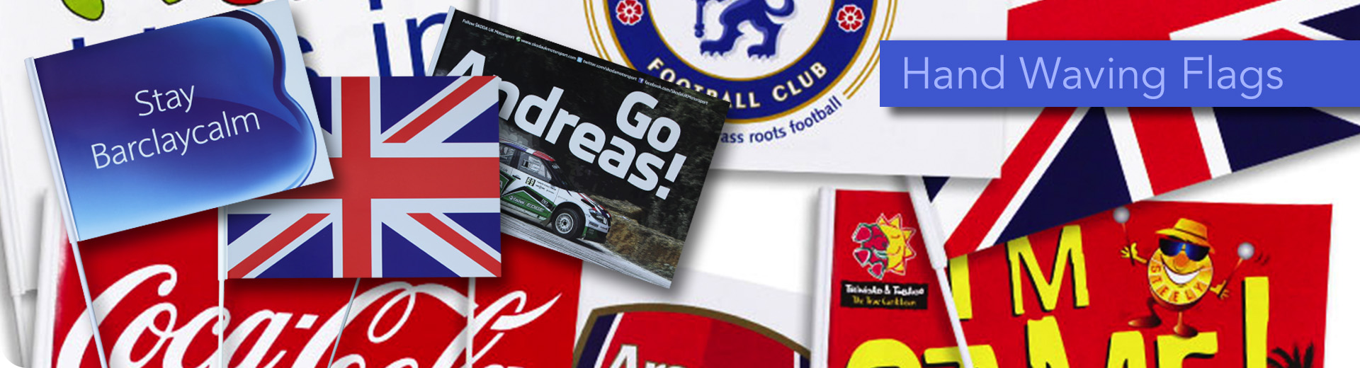 As the UK's Premier Bunting and Hand Waving Flag Specialist, we regularly work with blue chip companies and premier brands such as Sainsbury, X Factor and ITV, Tesco, Political Parties and Charities.
